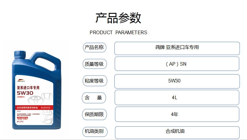 適用于所有日產(chǎn)系列、豐田車系及韓國現(xiàn)代系列中高級車輛發(fā)動機潤滑。