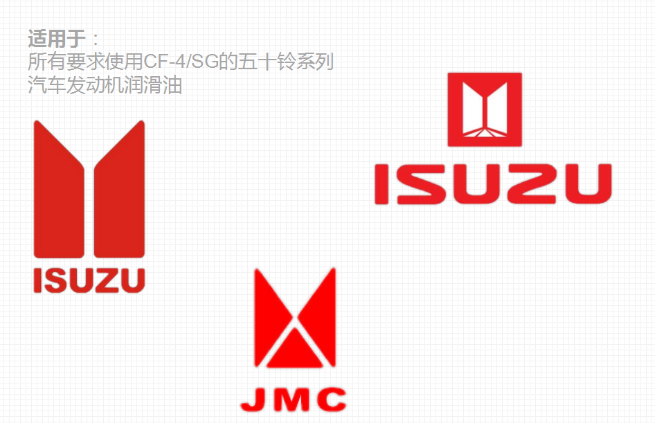 適用于所有要求使用CH-4/SJ的五十鈴系列汽車及公路用輕型及重載卡車發(fā)動機潤滑。