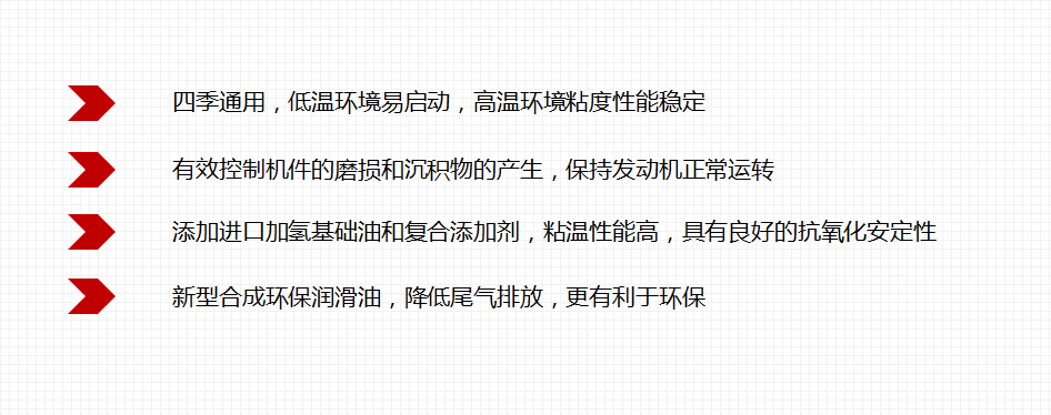 采用進(jìn)口加氫基礎(chǔ)油和進(jìn)口復(fù)合添加劑調(diào)和配制,四季通用,低溫環(huán)境易于啟動(dòng),高溫環(huán)境粘度性能穩(wěn)定,有助于控制機(jī)件的磨損和沉積物的產(chǎn)生,保護(hù)發(fā)動(dòng)機(jī)正常運(yùn)轉(zhuǎn);