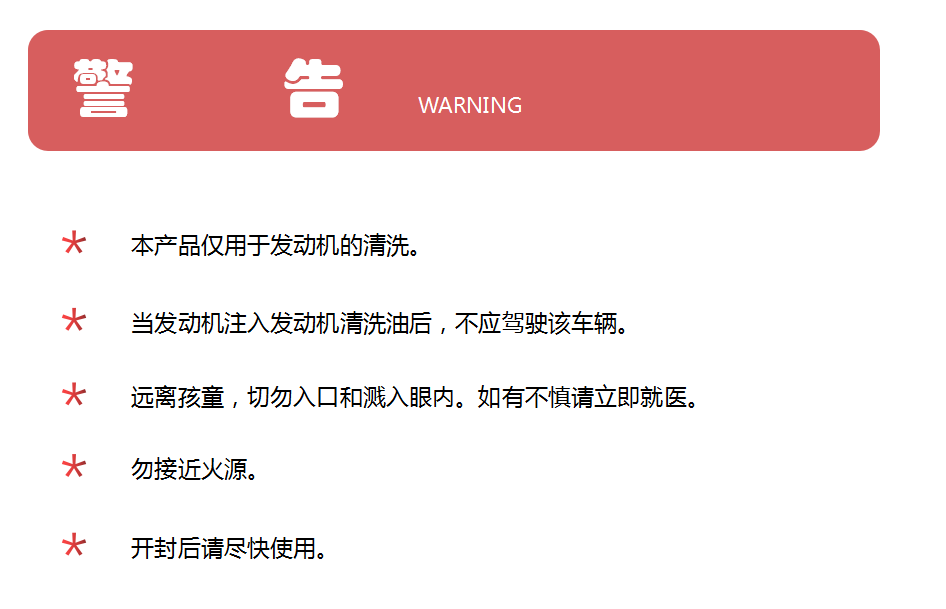 養(yǎng)護(hù)類型:發(fā)動(dòng)機(jī)清洗油 </br>